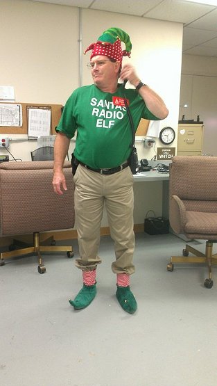 | Bob (KI4QAA) is very comfortable in his radio-elf outfit |