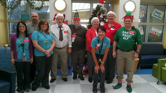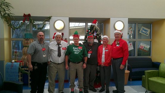 | The 2012 Santa Net Crew: Chris (KJ4JHT), Francis (KJ4PJH), Bob (KI4QAA), Robert (AG4ZG), Gretchen (KK4ECJ) and Art (KK4ECI) are feeling the Holiday Spirit. |